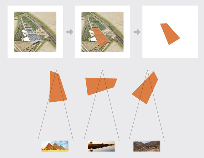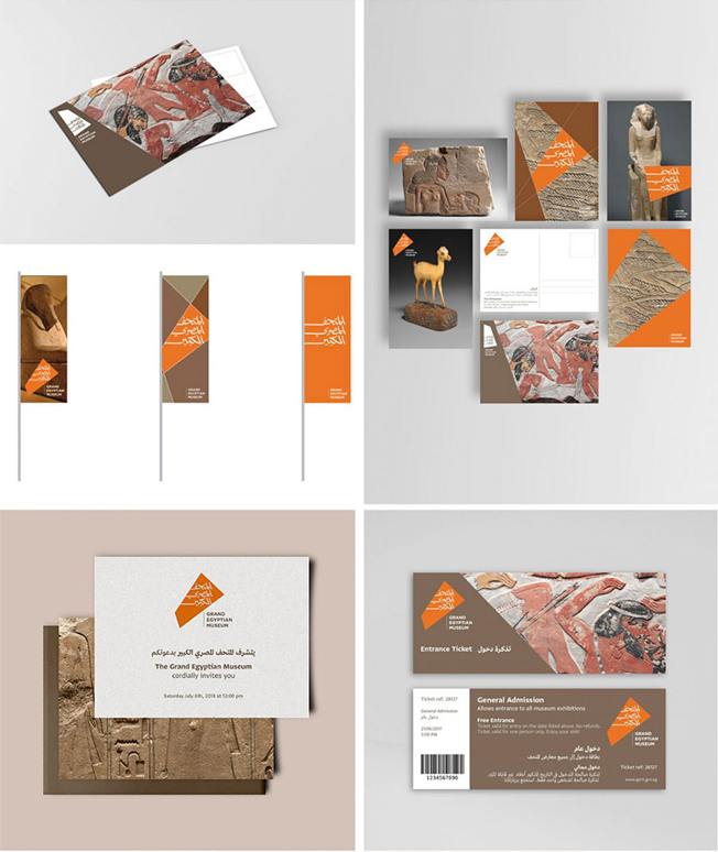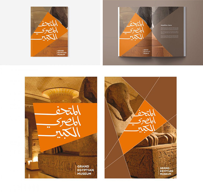根據(jù)設計師介紹,這個LOGO看似簡單,但它的每一個角的定位都是動態(tài)的,在使用的過程中會不斷變化,以此來反應從博物館建筑內(nèi)部看到的不同歷史視角,并象征著建筑內(nèi)部與外部空間之間的連接。包括與金字塔,開羅市和尼羅河。