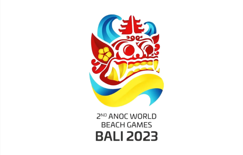 2023年ANOC(國家和地區(qū)奧林匹克委員會協(xié)會)世界沙灘運動會在印度尼西亞巴厘島舉行,沙灘運動會的標(biāo)志以巴厘島傳統(tǒng)的巴龍面具為特色,將代表巴厘島和海灘的獨立元素融入其中。