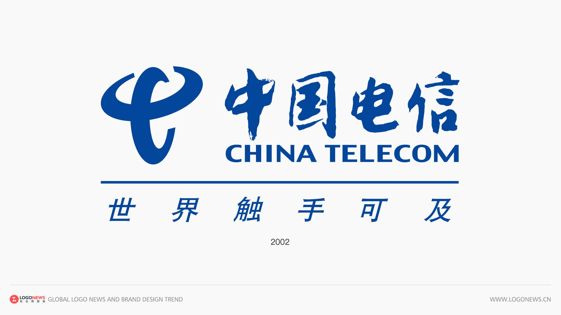 2002年,中國電信企業(yè)借拆分重組之際,棄舊換新,推出了目前我們所熟知的「中」、「C」組合相似「牛角」的新LOGO以及企業(yè)形象口號「世界觸手可及」。近年來,LOGO和口號組合的應用形式逐漸被單一的LOGO所代替。不過中國電信集團有限公司的官方網(wǎng)站(chinatelecom.com.cn)目前用的還是口號和LOGO組合版,而且顏色也沒有更新。