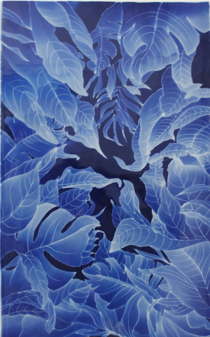 類似水之意象的作品也體現(xiàn)在陶瓷作品中,以一種更為傳統(tǒng)的形式呈現(xiàn),張夢雅運(yùn)用中國傳統(tǒng)陶瓷繪畫中極具代表性的青花分水繪畫技法,將她對于自然山水和城市發(fā)展的感悟繪制于瓷盤之上,形成了水墨氤氳的藝術(shù)意境。馬聰?shù)乃嵪盗须p面繡落地屏風(fēng)以抽象簡約的云水紋樣,結(jié)合中國非物質(zhì)文化遺產(chǎn)——雙面繡手工藝,或?yàn)樗睿圃扑鲃?dòng),或?yàn)樵茍F(tuán)狀,似隱似現(xiàn),以其飄逸靈動(dòng)、回轉(zhuǎn)交錯(cuò)的結(jié)構(gòu)表達(dá)了東方美學(xué)“疏密有致”的意境美感和“虛實(shí)有度”的審美張力。
