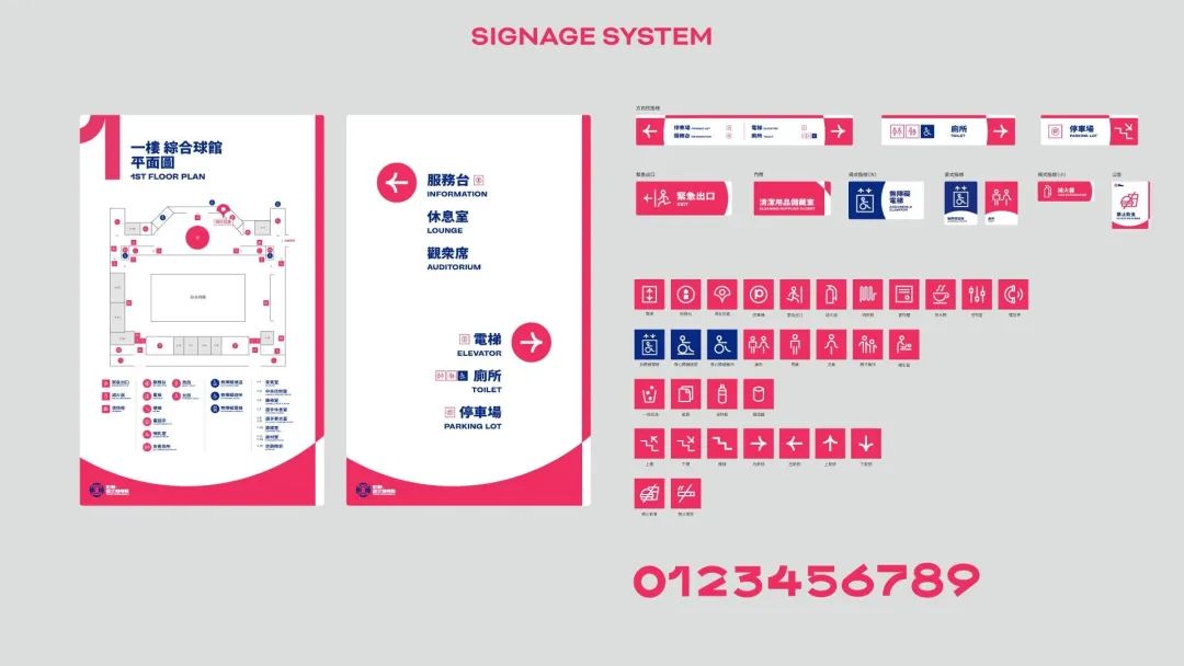 主視覺應用發(fā)展五種圖形元素,加入螢光綠為輔助色,讓視覺更為活潑,并制作視覺形象動畫,應用在九個入口屏幕、館外的大型LED以及未來賽事記分板屏幕,打造豐富多元、充滿回憶與活力的形象。