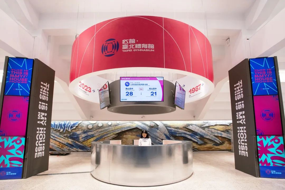 臺北體育館空間再設計來自無有設計,改造工作結合了新標志的造型。入口新增設同心圓結構的服務臺與無障礙柜臺,同時增加設數(shù)字面板與加強溝通資訊設計,包含統(tǒng)一的形象視覺、場館形象動畫的播放以及現(xiàn)場賽事資訊,讓前來比賽的選手與民眾,走進場館就可找到所需訊息。