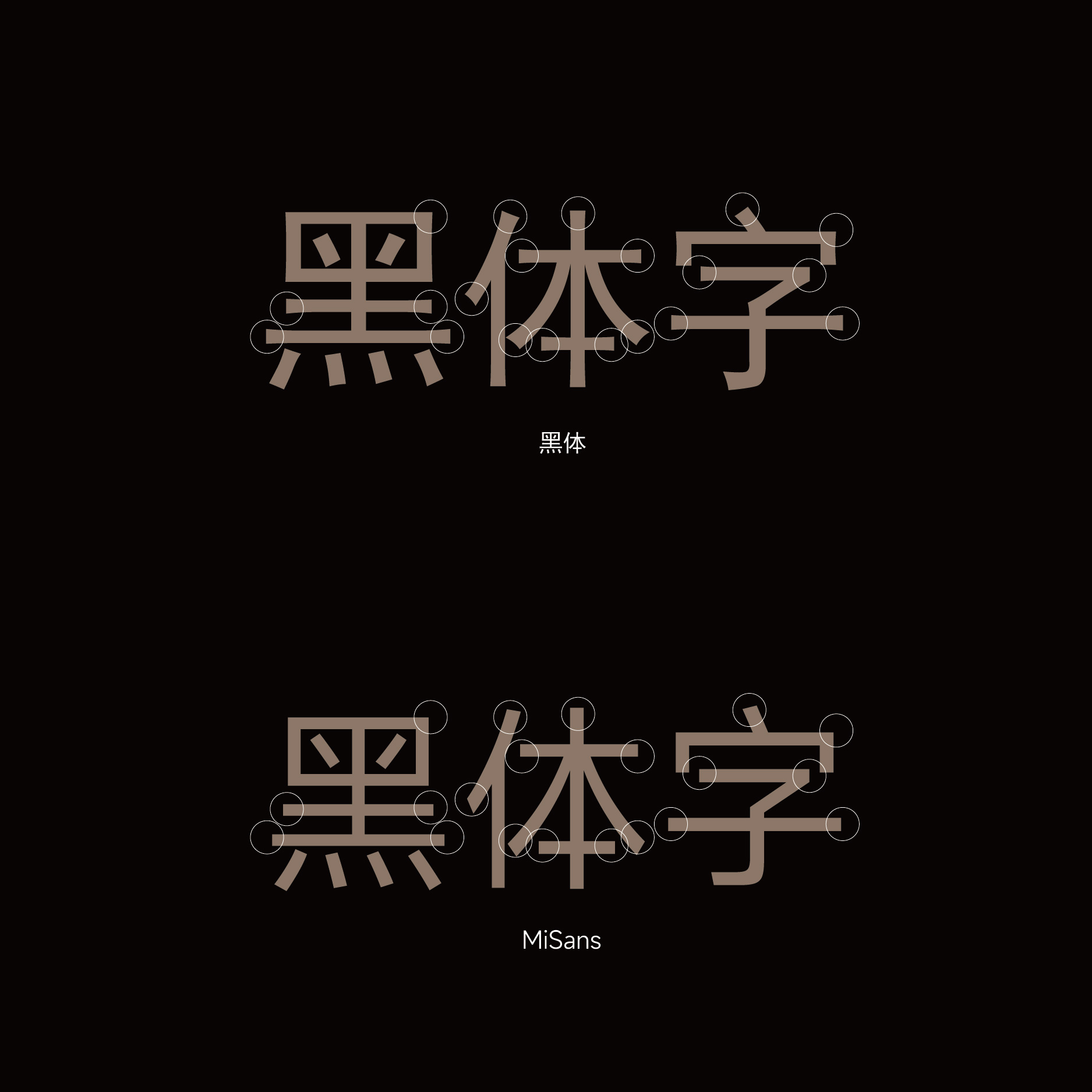黑體在傳統(tǒng)印刷工藝時期,設(shè)計(jì)上還有類似襯線的元素存在,設(shè)計(jì)者因?yàn)橛∷⒌臅r候字的四周容易著墨少等原因而對筆畫端頭采用了喇叭口設(shè)計(jì),進(jìn)行視覺強(qiáng)調(diào)。隨著近幾十年技術(shù)的發(fā)展,現(xiàn)代激光和噴墨印刷代替了傳統(tǒng)工藝,并且黑體大量運(yùn)用于視網(wǎng)膜高清顯示技術(shù)中,真正的漢字黑體逐步替代老式的裝飾化黑體。黑體更加幾何化,呈現(xiàn)現(xiàn)代感,視覺平衡勻稱,因此很多品牌的標(biāo)準(zhǔn)字都是基于黑體改進(jìn)設(shè)計(jì)的。